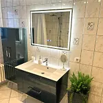 Les équipements de cuisine de cette propriété de Schleiden comprennent une bouilloire électrique, un réfrigérateur et de la verrerie, fournis dans un coin repas extérieur. Landhaus-Villa, Sauna, Private Garten est également à quelques instants de l'arrêt de bus Oberhausen.